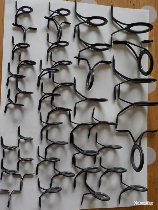 Lot de 43 anneaux doubles pattes, intèrieur porcelaine grise, composé de 5 en 1,7cm intérieur, 4 en 1,4cm , 8 en 1cm, 13 en 0,8cm, 7 en 0,7cm et 6 en 0,5cm état neuf