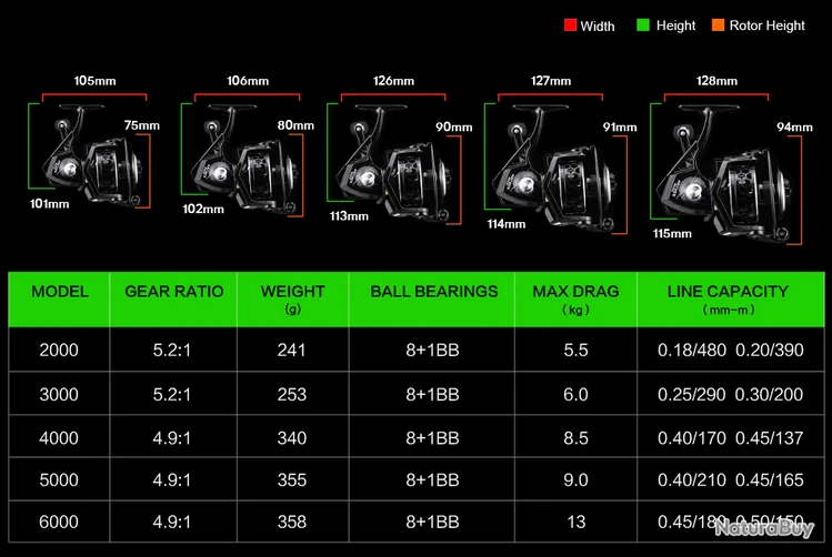 ARCHER BOBINE 2000 Gear Ratio: 5.2:1 Poids: 241g Roulements: 8 + 1BB Faites Glisser Max: 5.5KG Capacité De La Ligne: 0.18mm-480M 0.20mm-390M