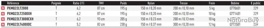 Caractéristiques du moulinet Prorex Prorex MQ 22 LT 3000 CXH