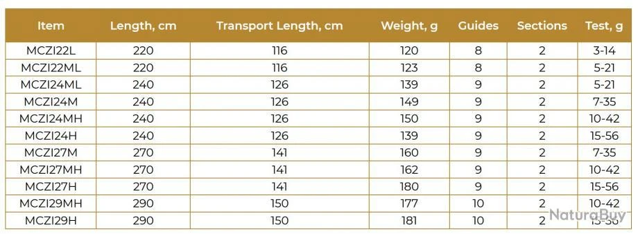 Caractéristique de la canne Maximus Zircon casting MCZI22L: